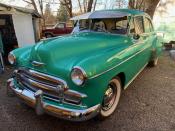 "The American Family Car", 90,952 original miles, This automobile has been fully restored even down to the original 6 Volt electrical system, The engine has been re-gasketed and serviced, Upgrades include ultra leather interior including the trunk, German square weave carpet, The paint is 1995 Honda del Sol green, She has all new tinted windows, The trim has been re-chromed, She has new window, door and body rubber seals, It features a Fulton visor, The tires are BF Goodrich wide white wall radial tires with beauty rings, The trunk has a 12 Volt battery to power a stereo system and underbody running lights, The speakers are old drive-in movie speakers, The car has been garaged and is non-smoking.