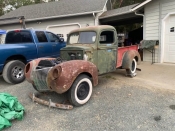$7100.00 1940 Ford Pickup Project Selling one of my projects that will have a better possibility of being completed this Spring Price Henry Steel I'm putting it back together little by little. Call with your questions. Click Here for more pictures! Contact: Ted Phone: (541) 761-37 eight nine $ 7,100 Location: Grants Pass, Oregon 97527 Click Here to receive a 'Free Shipping Quote' using the City, State and Zip Code shown above. When contacting the seller, let them know you saw their ad on Northwest Classic Auto Mall. This page has been viewed 15 times. |