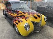 $35041.00 1941 Ford Sedan Delivery A very cool and rare piece! This 1941 Ford Sedan Delivery was modified under previous ownership, with work consisting of repainting the body, reupholstering the interior, and installing a modified front and rear suspension as well as a 350 ci Vortex V8 linked with a Turbo 350 automatic transmission and an 8" rear axle. Nice dual exhaust system with Turbo mufflers. Equipment includes power steering, dropped front axle, front sway bars, adjustable rear coilovers with ladder style bar rear suspension, power-assisted front discs and rear drums, Chevrolet Bowtie intake manifold and Holley four-barrel carburetor, polished finned valve covers, aluminum accessory pulleys, air conditioning, and Stewart-Warner instrumentation. The tilt steering wheel frames a Stewart-Warner 160-mph speedometer and four supplementary gauges. The five-digit mechanical odometer shows 26k miles. Polished American racing 15″ wheels, Flaken tires 235/75/15 rear and 185/70/14 up front. The cabin features bench seat with an arm rear. The car is finished in black and trimmed in burgundy leather upholstery, joined by a color-coordinated dashboard, door and cargo panels, and carpeting. Equipment includes air conditioning, a column-mounted shifter, lap belts, and leather covered rear cargo side panels. A battery has been mounted below the floor behind passenger seat. Details include a polished grille, chrome bumpers, dual side mirrors, bodyside moldings, dual taillights, and black rubber-lined running boards. Classic California Kids styled flame. No radio. Total mileage is unknown. More photos and videos on request Contact: John Phone: (971) 337-63 three four Email: campbells.appraisal@gmail.com $ 35,041 Location: Vancouver, WA 98682 Click Here to receive a 'Free Shipping Quote' using the City, State and Zip Code shown above. When contacting the seller, let them know you saw their ad on Northwest Classic Auto Mall. This page has been viewed 33 times. |