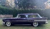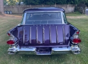 This two-door 1957 Pontiac Star Chief Custom Safari Station Wagon is one of only 1,292 built and has often been referred to the Pontiac Nomad since the two cars share most parts from the firewall back. That Nomad commonality is also why Safari wagons are very rare—many were cannibalized for Nomad restorations one of 1292 produced. This ’57 Safari was modified by previous owners who replaced the original 347-cubic-inch V8 with a 428-CI Pontiac V8 from a ’68 Bonneville rebuilt. The interior features the rare factory air conditioning controls and dashboard vents. The interior redone in newer cloth upholstery. The original 347-cubic inch V8 was replaced by the previous owner when he restored and modified the Safari. The 428-cu.in. OHV V8 came from a 1968 Pontiac Bonneville and was rebuilt. It’s topped with a four-barrel carburetor and is cooled by an aluminum radiator and an electric fan. The engine start's easily with a smooth idle. The automatic transmission is a Turbo 400 that has been rebuilt and shifts smoothly. The non-factory purple paint is “shiny and glossy”. The trim tag code HQQ indicates that the primary color was originally Charcoal Grey with the secondary color being Silver Beige. The tailgate has the correct shorter cables that were necessary to prevent the tailgate bars from contacting the bumper. The “Pontiac” tailgate letters are present and the tailgate bars aren’t pitted (a common problem). The chrome parts have been rechromed. The glass is very good and the seals are good with no leaks, windshield wipers have been converted to electric operation. The interior features a newer bench seat upholstered in gray cloth but the trim tag code 244 indicates that the car originally had Charcoal Gray leather upholstery. All the unique Custom Safari interior trim items (including the window moldings and headliner bows) are in good condition in the provided photos. The car has its rare factory air conditioning controls and dash vents and the system is in working condition, although the A/C compressor is a modern unit. The original steering wheel is uncracked in the provided photos. The heater and radio work. The carpet and headliner are both in “excellent” condition. The front brakes were upgraded to power disc brakes. The car drives straight with no play or vagueness, in the seller’s opinion. There are no reported issues with the bushings, shocks, or brakes. The Steel rims with Wide Whitewall Radials in good condition with Pontiac 1954 Script caps A box full of restoration documentation, receipts, dates, prices, mileage, and diagrams is included in the sale. 1954 Pontiac Hubcaps. The dashboard lights need a couple bulbs. This 1957 Pontiac Start Chief Custom Safari wagon is the Pontiac sibling of the Chevrolet Bel Air Nomad wagon. No current rust or any prior rust repairs. The engine has been upgraded with a 428-cu.in. from a ’68 Bonneville. Turbo 400 Transmission. This Safari is one of just 1,292 two-door models produced. The car has the rare-for-1957 factory air conditioning.